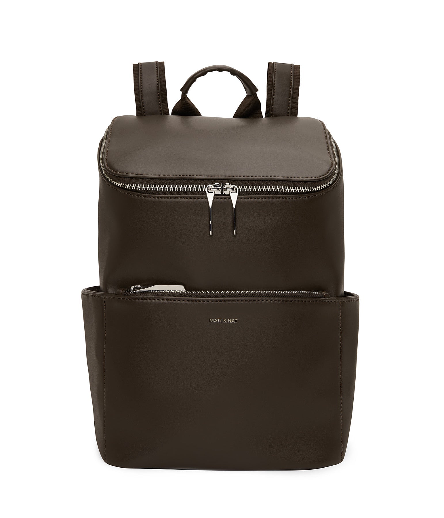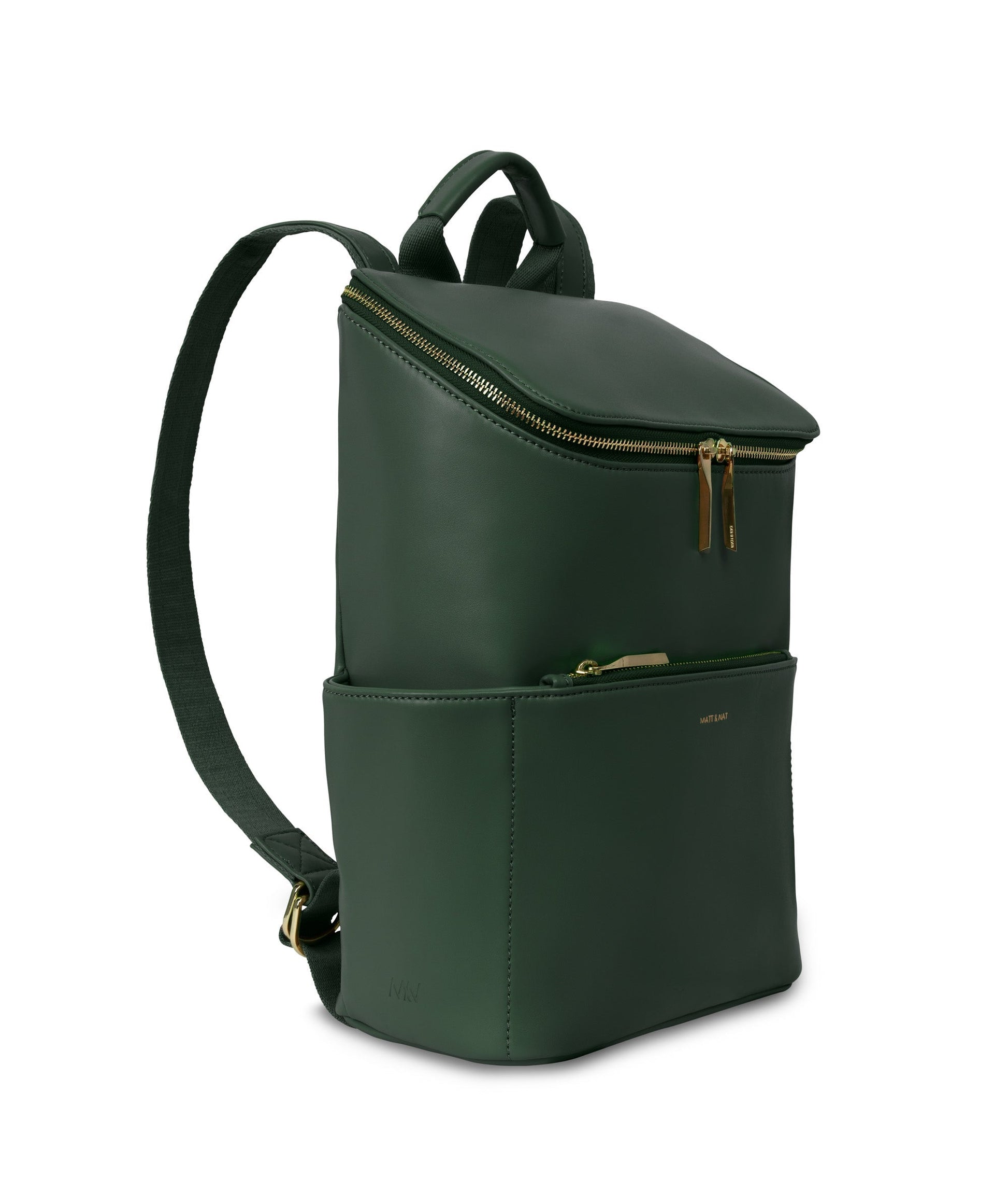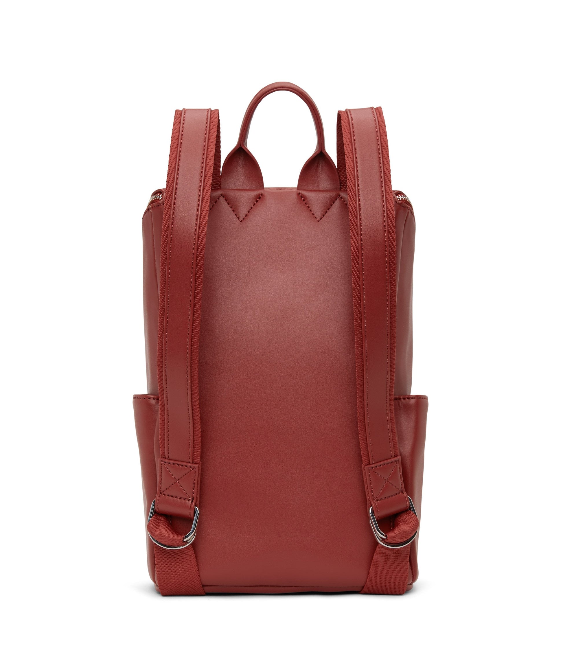 Backpack with top zipper closure. Adjustable webbing straps. Side pockets and front zipper pocket. Fits a 13” laptop. Also available in Purity Collection.