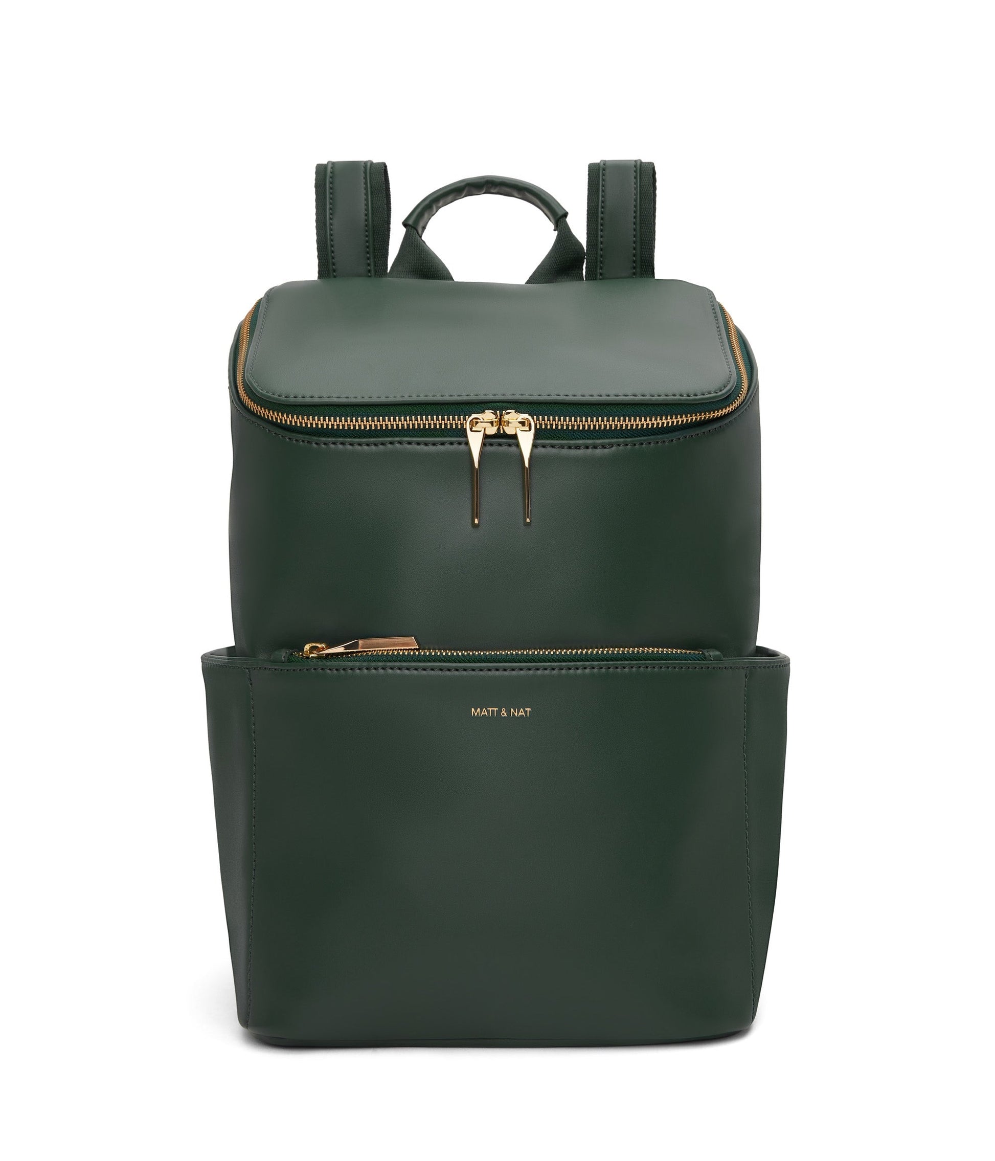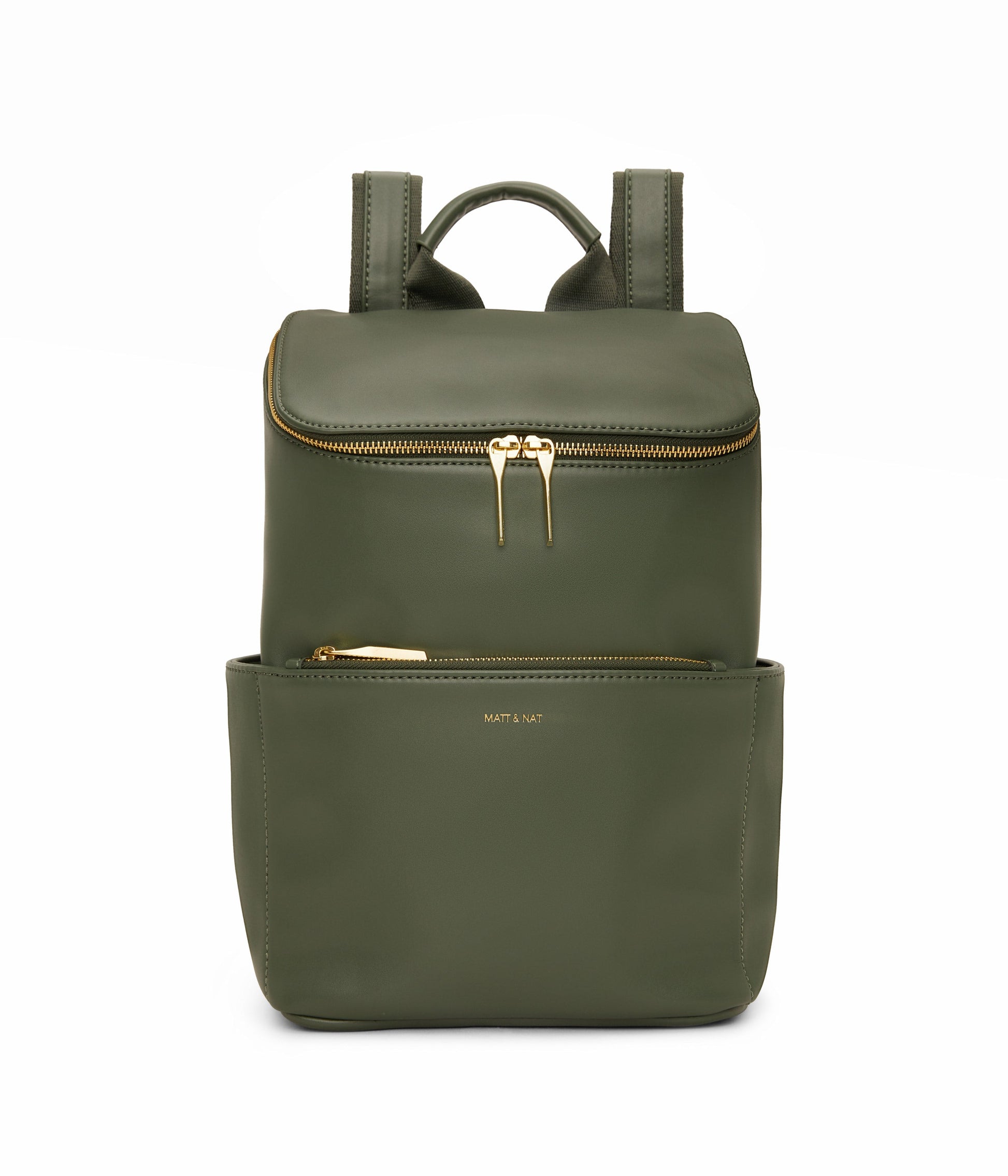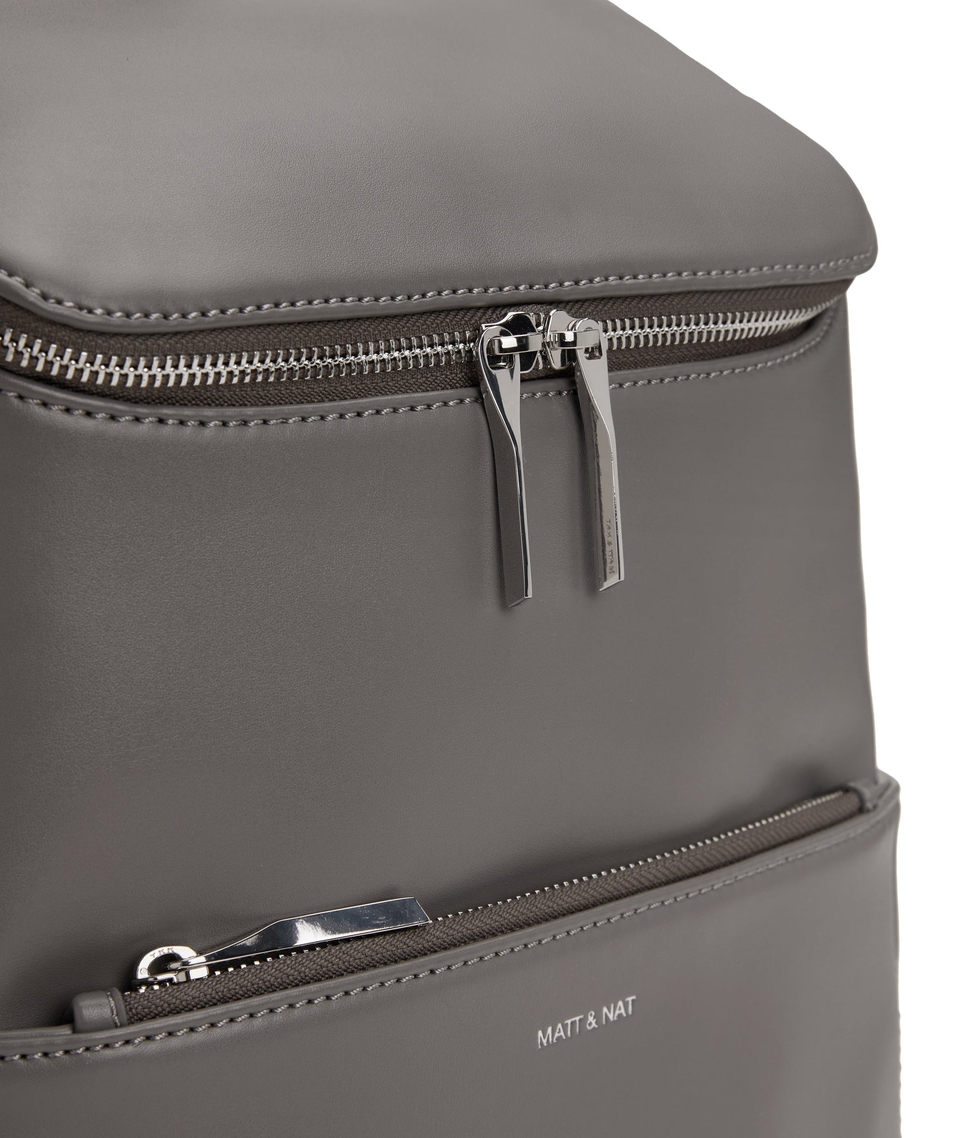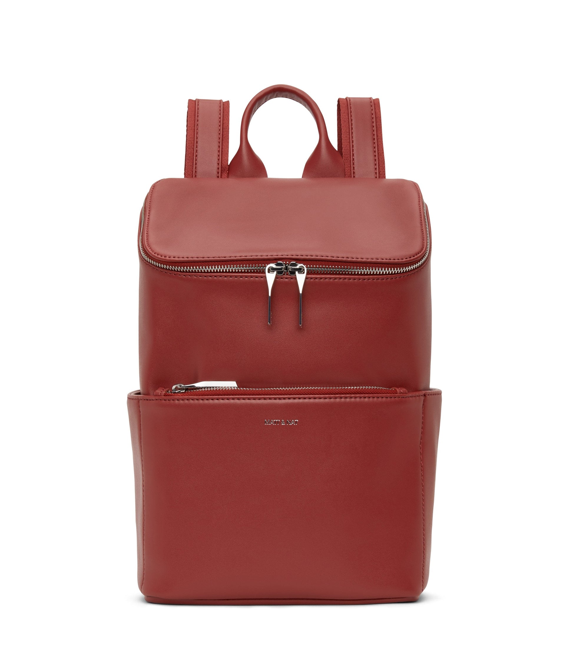 Backpack with top zipper closure. Adjustable webbing straps. Side pockets and front zipper pocket. Fits a 13” laptop. Also available in Purity Collection.