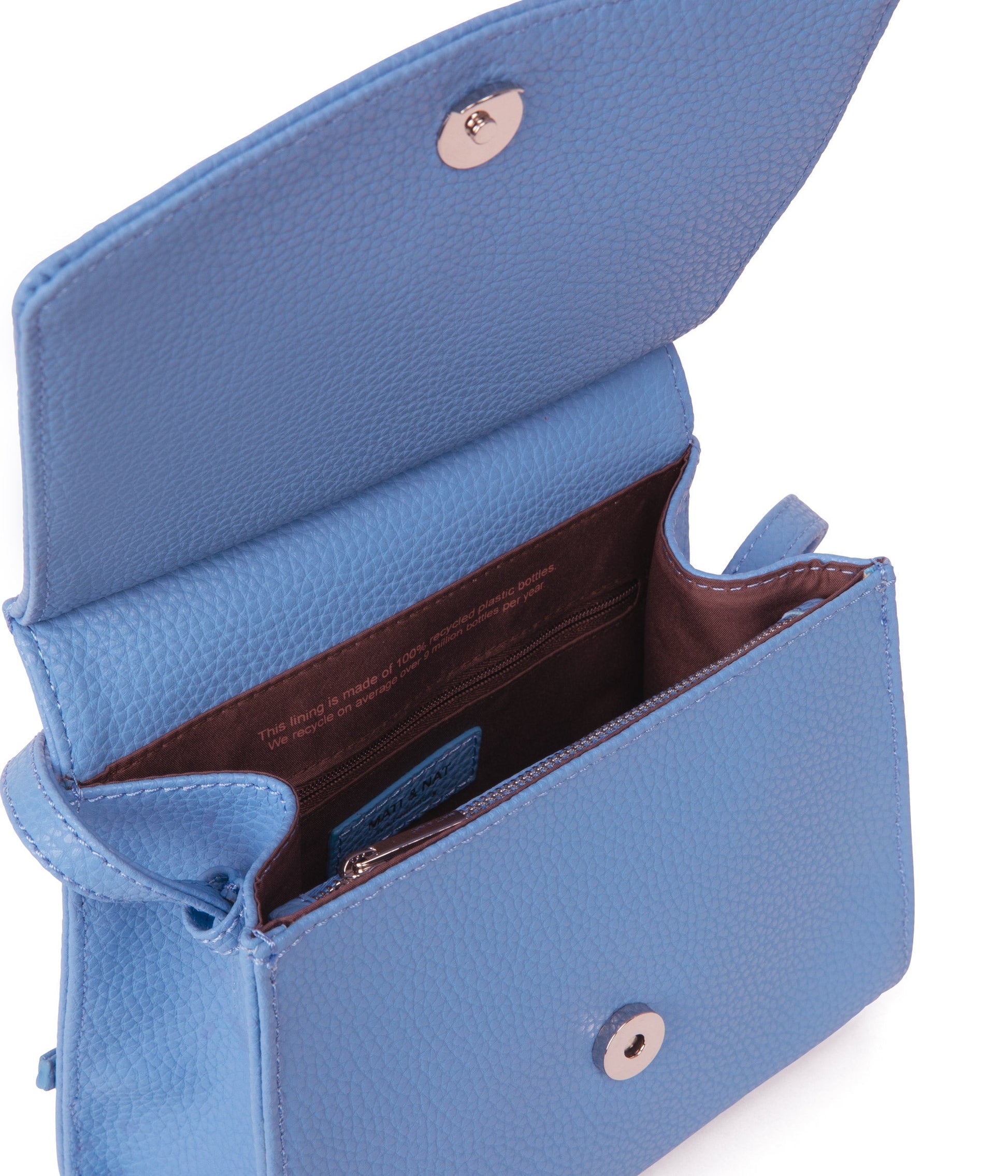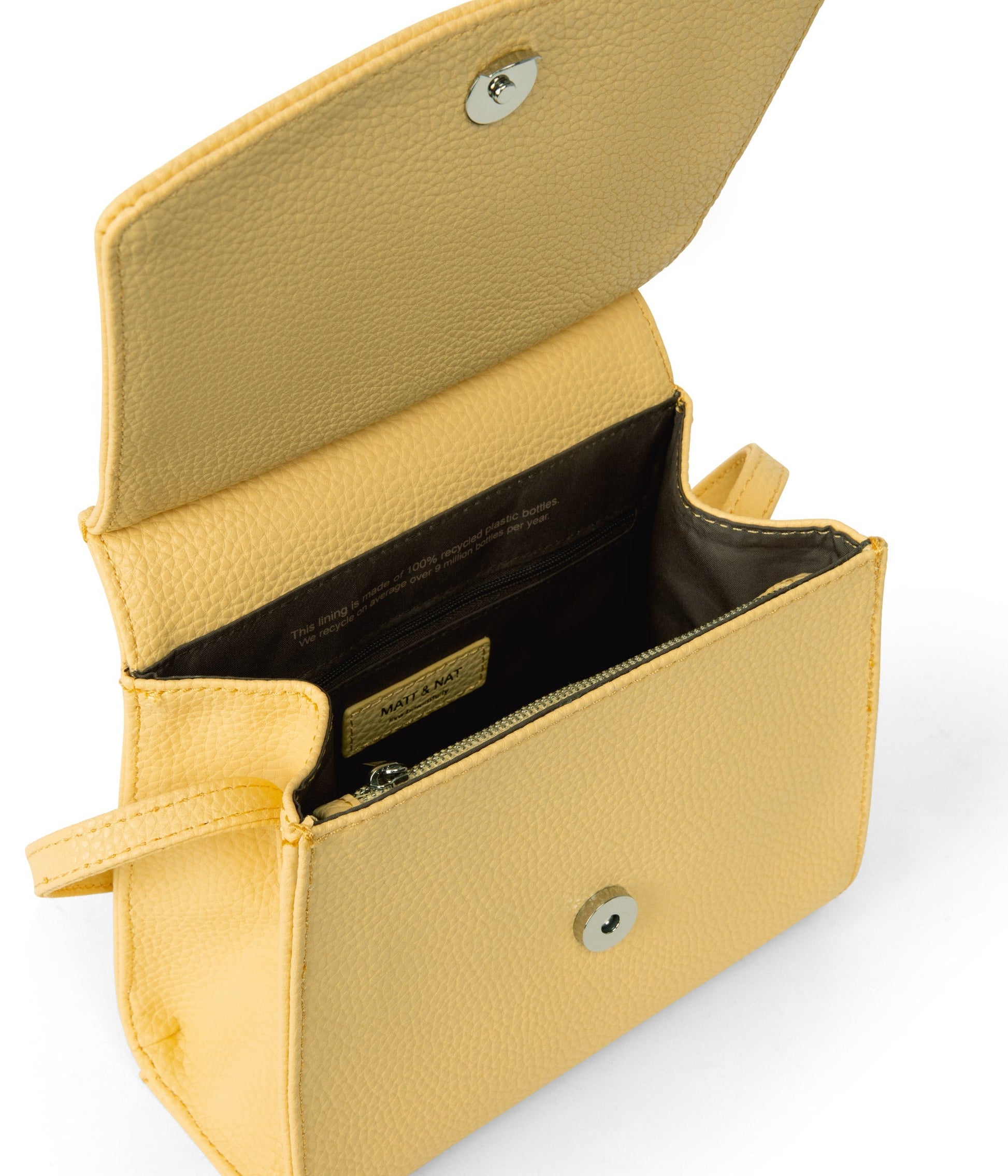 All of the interior linings of our bags are made from 100% recycled plastic bottles.